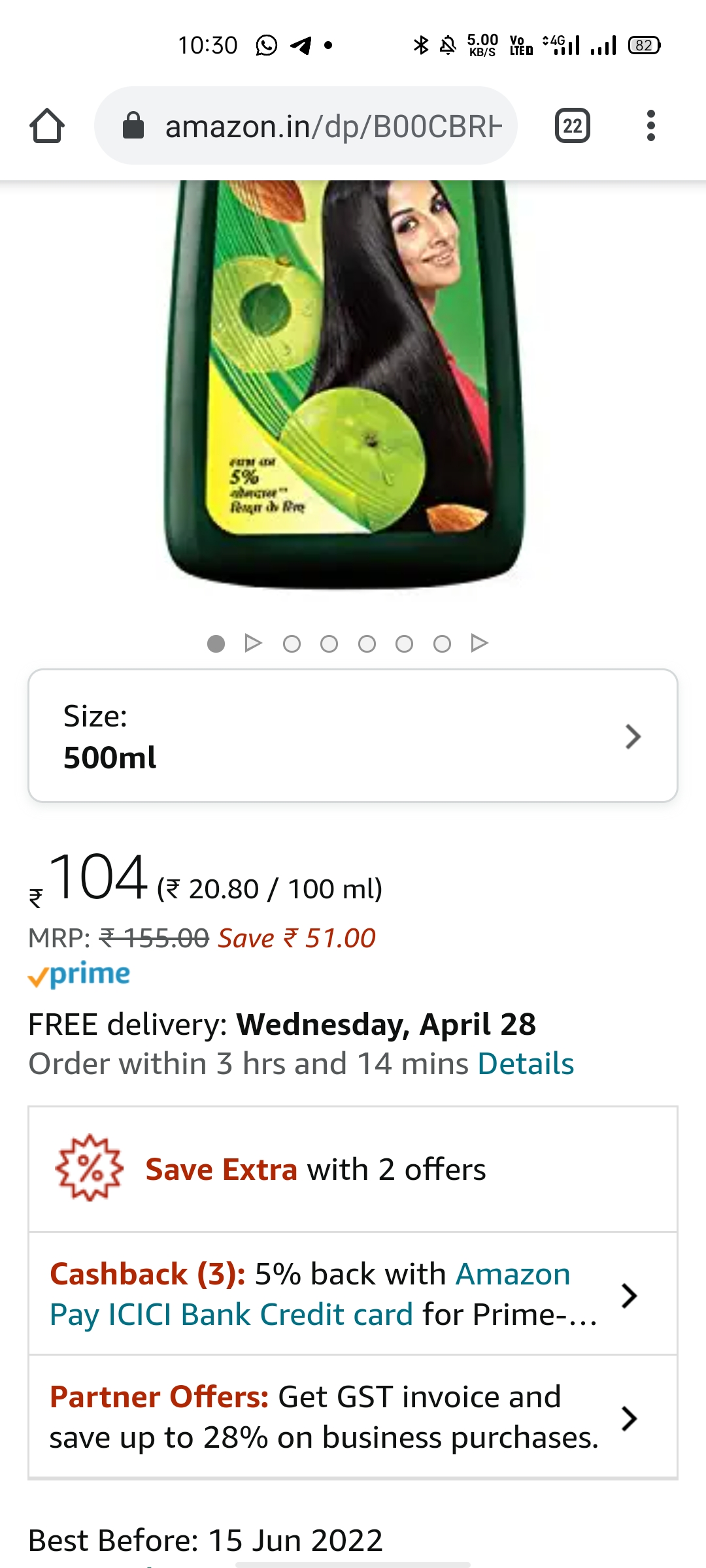 nihar April 24, 2021 by jaybee Nihar Shanti Amla and Badam Hair Oil, For Black, Silky and Stronger Hair,500 ml @104 Buy now