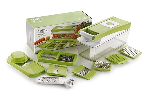 Ganesh 14 in 1 Multipurpose Chopper, Fruits & Vegetable Cutters, Grater Peeler Chipser, Unbreakable Food Grade Body, Easy Push to Clean Button Slicer Dicer, Chopper for Kitchen (Green, Plastic)