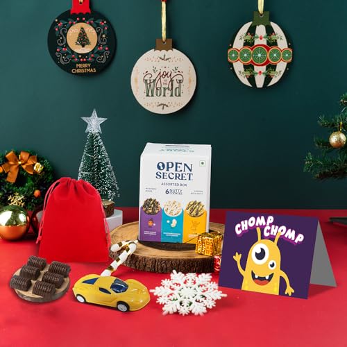 Open Secret Christmas & New Year Gifts for Kids | 8 Item Gift Combo – Kids Card, Chocolate Basket/Potli (Pack of 3), Assorted Story Box (6 Cookies), Kids Toy | Secret Santa Gifts | Gift Box for Boys/Girls is available on Amazon at best discounted online price. MRP of this product is ₹ 1254. You can buy this product at discounted rate ₹ 249.