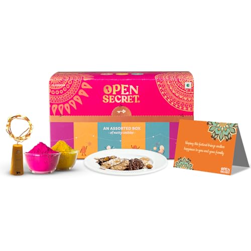 - Perfect Gifting: Celebrate with Open Secret’s Classic Style Gift Hamper, Enjoy the ideal blend of a Healthy Snack Hamper featuring Assorted Cookies with Nuts and some exciting merchandise.