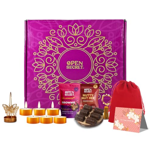 Open Secret Valentines Day Wholesome Chocolate Gift Box | Gift Box with Valentine Card, Scented Candles, Chocolate Gift Box, Brownie, Butterfly Stand, Festive Light, Tandoori Flavored Nuts | Valentine Gifts Hamper for Girlfriend, Boyfriend, & Love | Gift for Him/Her is available on Amazon at best discounted online price. Original price of this product is ₹ 3225. You can buy this product at discounted rate ₹ 549.