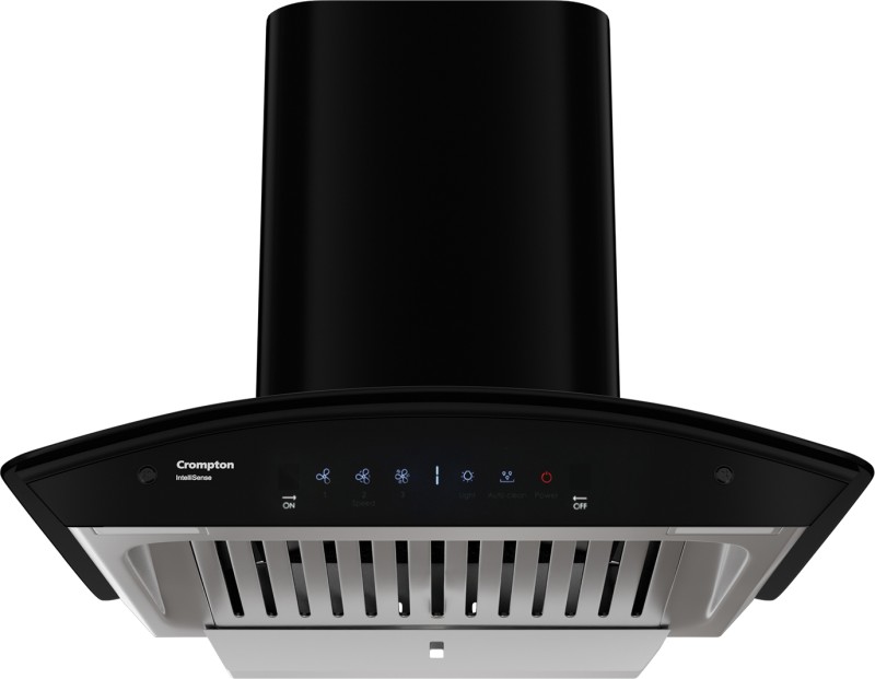 Crompton CHD-ISC60BFE-EC Auto Clean Curved Glass 60 cm| Free Installation| Intelli Auto Clean| Low Noise Wall Mounted Chimney(Black 1417 CMH)