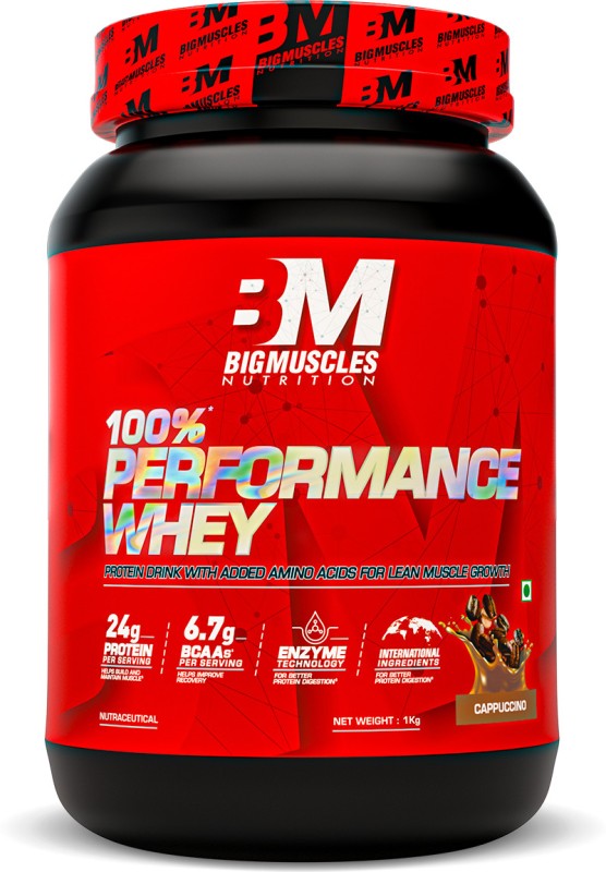 BIGMUSCLES NUTRITION Performance Whey Protein | 24g Isolate Whey Protein Blend | Enzyme Technology Whey Protein(1 kg, Cappuccino) is available on flipkart at best discounted online price. Original price of this product is ₹ 2325. You can buy this product at discounted rate ₹ 880.
