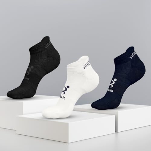 Vifitkit Bamboo Socks for Men and Women, Ankle Length Socks, Odour-Free and Breathable, Padded Base and Anti-Bacterial, 3X Softer Than Cotton Socks (Pack of 3, Black, Blue and White)