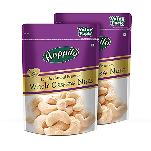 Happilo Premium Whole Cashew Nuts, Nutritious Dry Fruit, Healthy Snacks – Rich in Nutrients, Protein, Fiber, Vitamins 1kg (Pack of 2)