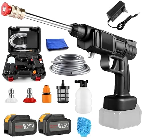 - 2X MORE PRESSURE: The Cordless Portable Washer delivers up to 40Bar of pressure, 240L/H Rated water flow, it is 2 times more pressure than a garden hose with a nozzle. Lightweight and compact pressure washer gun with a powerful lithium battery.