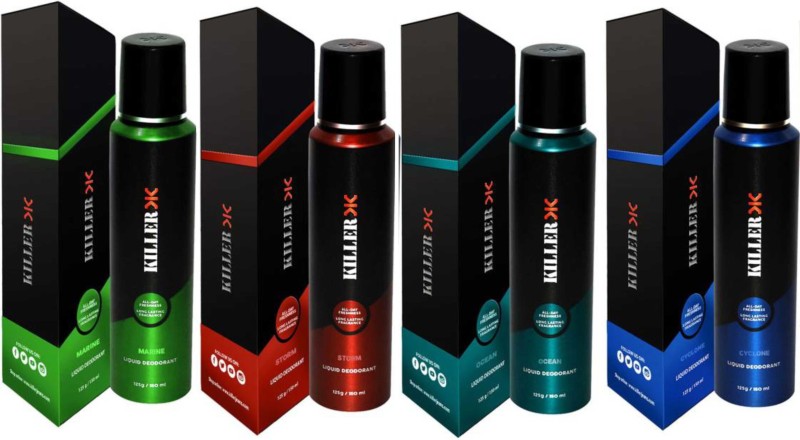 KILLER Marine, Storm, Ocean, Cyclone (150ml Each) Deodorant Spray – For Men & Women(600 ml, Pack of 4) is available on flipkart at best discounted online price. Original price of this product is ₹ 1076. You can buy this product at discounted rate ₹ 228.