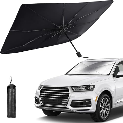 Woscher- U28 Car Sun Shade Windshield Cover, Umbrella Windshield Sun Shade for Car Front Window, Sun Protection & Heat Insulation Foldable Sun Shade for Most Vehicles- Black