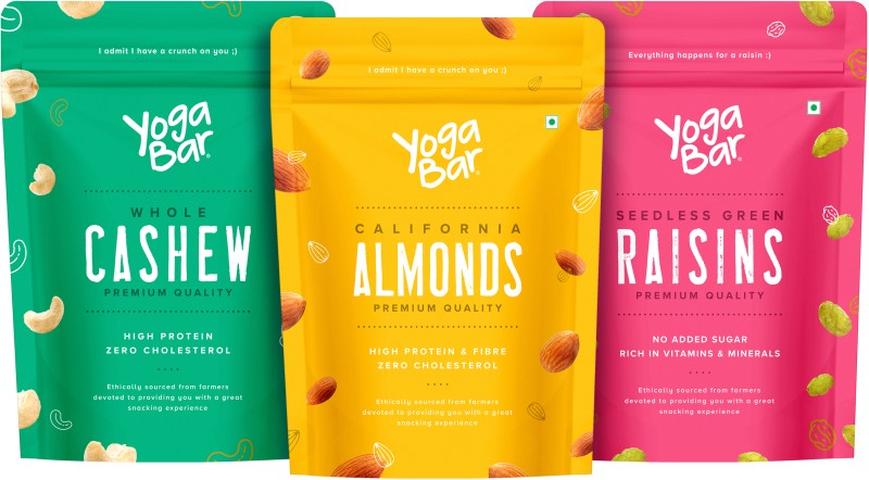 Yogabar California Almonds, Whole Premium Quality Cashews, Seedless Green Raisins Almonds, Cashews, Raisins(3 x 0.5 kg) is available on flipkart at best discounted online price. Original price of this product is ₹ 1550. You can buy this product at discounted rate ₹ 799.
