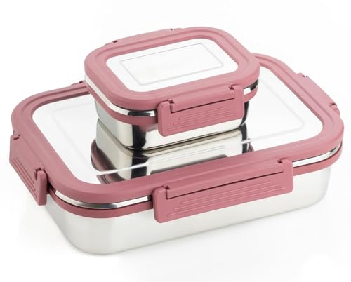- ✔️Crafted from high-quality, durable 304 stainless steel and 100% non-toxic food-grade plastic, this lunch box features an unbreakable lid with 4-side Lock & Seal Technology. The containers are designed with an easy-to-use 4-side locking system, preventing spills and leaks. Perfect for carrying both dry and semi-liquid foods.