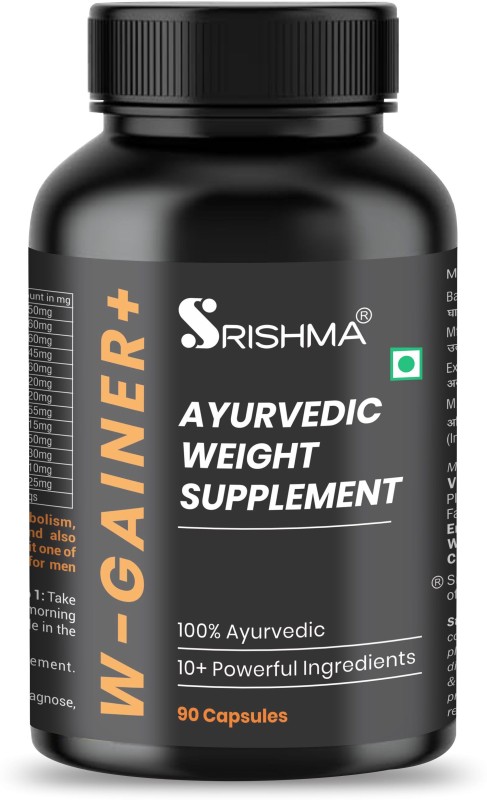 Srishma W-Gainer+ I New and improved formula I The Ultimate I 100% Ayurvedic Weight Gainers/Mass Gainers(90 Capsules, No Flavor)