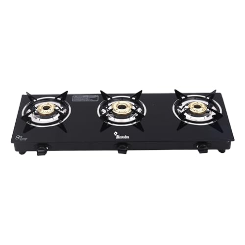 Thermador Glass Gas Stove 3 Burners Premium Brass Plated Burner | Automatic Ignition Tornado Burner 6 mm Toughened Glass Top |Nylon Ergonomics Knob |LPG Compatible|ISI Certified|1 Yr Warranty | Black is available on Amazon at best discounted online price. Original price of this product is ₹ 9000. You can buy this product at discounted rate ₹ 2099.