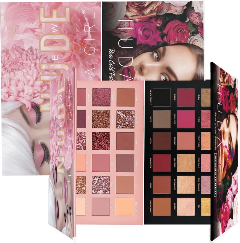 Huda Girl Beauty Nude Edition 18 Color Eyeshadow and Rose Gold Edition 18 Color Matte and Shiny Pigmented Beauty Eyeshadow Palette Combo Pack 20 g(Multicolor) is available on flipkart at best discounted online price. Original price of this product is ₹ 999. You can buy this product at discounted rate ₹ 269.
