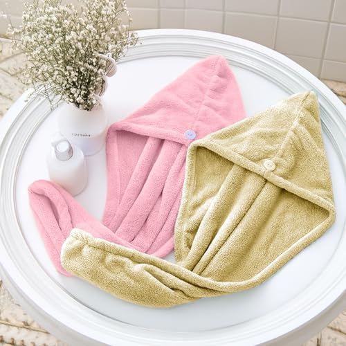 Status Contract Head Towel|Pack of 2 Microfiber Quick Dry Towel|Super Absorbent & Soft|Luxury Spa Towels with Hook|Lightweight Travel Towel|Hair Towel for Men & Women|(Yellow & Pink), 200 Tc
