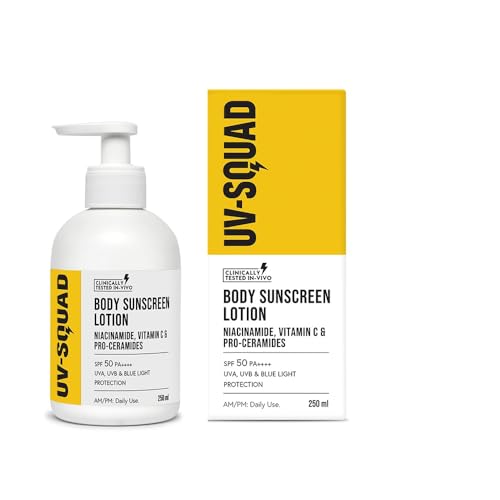 UV Squad Body Sunscreen Lotion Spf 50 Pa++++ With Niacinamide For All Skins, Vitamin C & Pro-Ceramides No White Cast Non-Greasy, Sweat Resistant is available on Amazon at best discounted online price. Original price of this product is ₹ 649. You can buy this product at discounted rate ₹ 268.