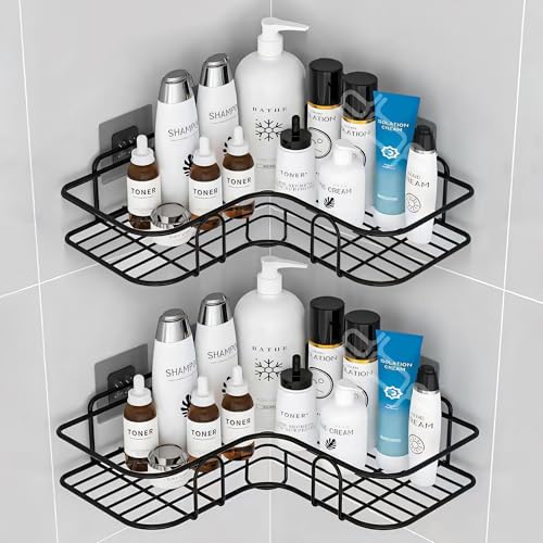 - ๐๐ฎ๐ซ๐๐๐ฅ๐ ๐๐๐ญ๐๐ซ๐ข๐๐ฅ: This self-adhesive corner shelf is made of GI metal with 7-layers of rich black powder coating for trustable durability, longevity and anti-rusting properties.