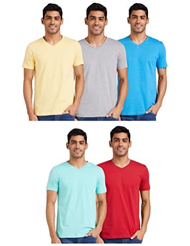 - Combo Pack of 5 Regular Fit V-neck T-shirts