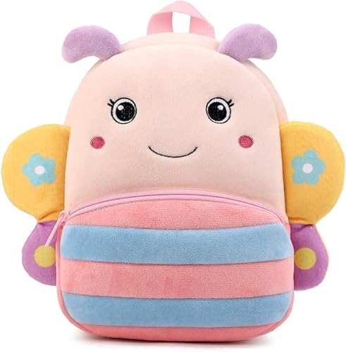 HappyChild Kids Plush Backpack for Boys and Girls, Plush Animal Cartoon Mini Backpack Little kids bags for 2-5 years (MULTI 3.O BUTTERFLY)
