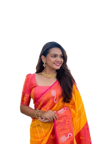 Priyangkrita Pure Heavy paithani silk saree with blouse piece (Orange) is available on Amazon at best discounted online price. Original price of this product is ₹ 6999. You can buy this product at discounted rate ₹ 1499.
