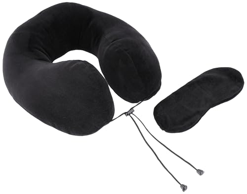 Amazon Basics Premium Travel Neck Pillow + Sleeping Eye Mask Combo l Comfortable | Soft Velvet Fabric I Black