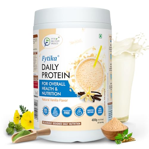 Fytika Daily Protein-400g (Pack of 1, Vanila) | Complete Nutrition Drink for Adults with 37 Essential Vitamins & Minerals | 50% Protein Per Serve | High Protein Drink for Men & Women is available on Amazon at best discounted online price. Original price of this product is ₹ 1799. You can buy this product at discounted rate ₹ 999.
