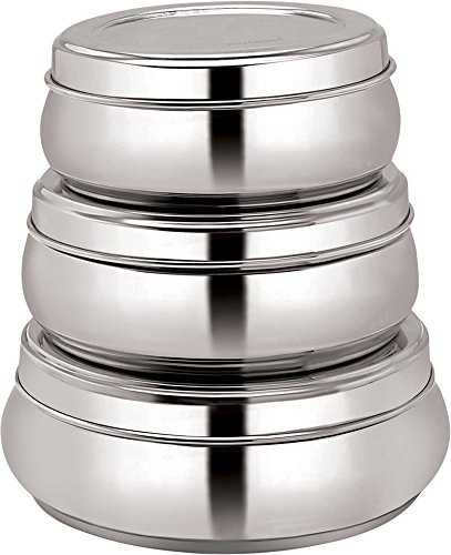 neelam Stainless Steel Lazer Etching 3-Piece Set Floral Design Belly Shape Puri Dabba, Elegant, Stylish Storage Containers for Puri, Snacks, Food, Durable Quality Tiffin Dabba for Daily Use. is available on Amazon at best discounted online price. Original price of this product is ₹ 590. You can buy this product at discounted rate ₹ 399.
