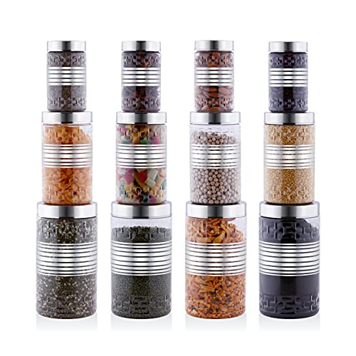 - Capacity:-(380 ml x 4,850 ml x 4, 1550 ml x 4,Silver).Keep you kitchen neat and tidy with stackable canisters occupying less space