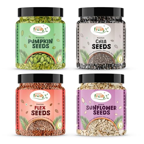 - HighFresh Raw Super Seeds Combo Pack features four powerful seeds—Sunflower, Chia, Pumpkin, and Flax—offering a nutrient-rich blend for maximum wellness.