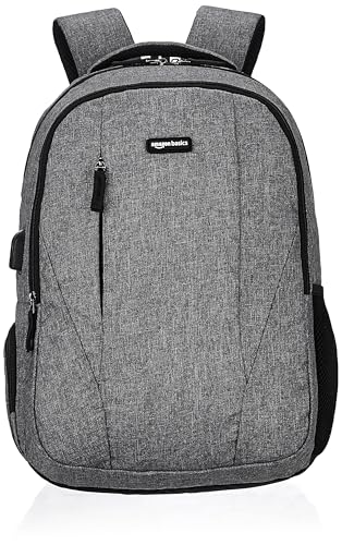 Amazon Basics 25L Anti-Theft Backpack | Fits 15.6 Inch Laptop | Bag with USB Charging Port | Multiple Compartments | Organiser Pocket for Men & Women (Grey)
