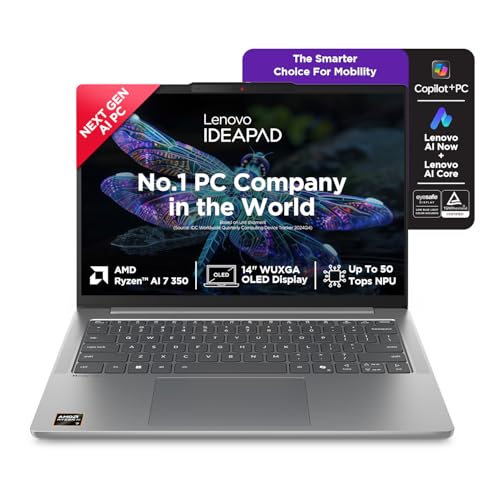 Lenovo IdeaPad Slim 5 AMD Ryzen AI 7 350, Copilot+ AI PC(24GB RAM/1TB SSD/14(35.5cm) WUXGA OLED/AI Now/50TOPS/Win 11/Office Home 2024/Backlit Keyboard/1Yr ADP Free/Grey/1.4Kg), 83HX001NIN AI Laptop is available on Amazon at best discounted online price. Original price of this product is ₹ 125890. You can buy this product at discounted rate ₹ 86890.