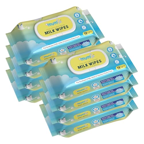 MUMta Milk baby wipes | With 99% Pure Water, Milk and Probiotics- 576 wipes| Plant Based Fabric for Sensitive Skin| Prevents irritation & rashes.(72 Each, Pack of 8)