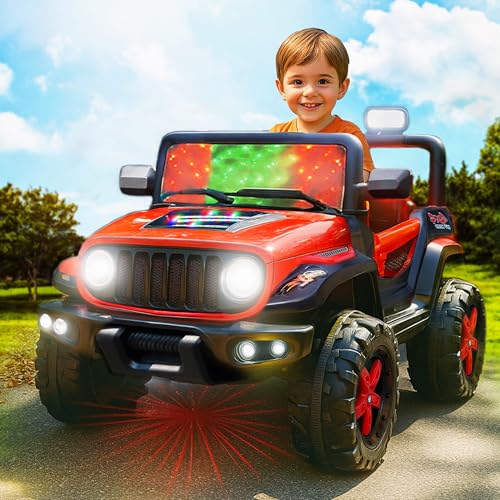 - ๐ช DURABLE & COMFORTABLE DESIGN: With sturdy wheels and wear-resistant seats, this jeep for kids ensures a comfortable and durable ride on various terrains.
