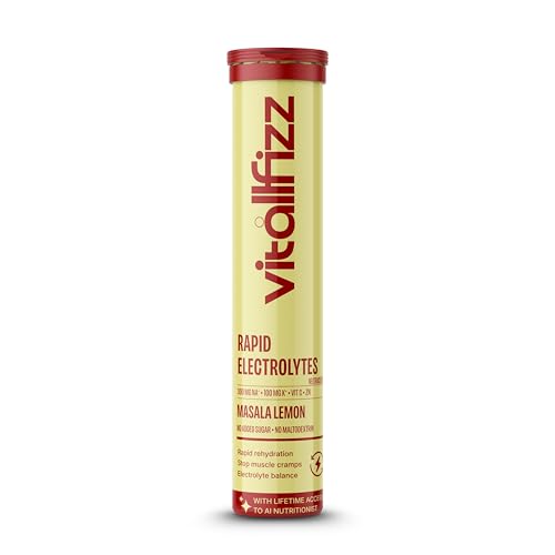 Vitallfizz Electrolyte Effervescent Tablets | Lemon Masala Flavour Hydration Tablets | Fizzy Drink Tablets for Daily Use | Pack of 8 is available on Amazon at best discounted online price. Original price of this product is ₹ 3499. You can buy this product at discounted rate ₹ 249.