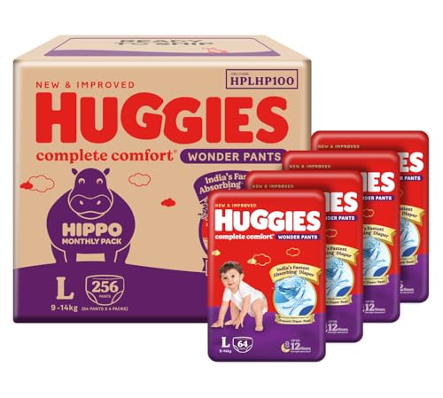 Huggies Complete Comfort Wonder Pants | Pant Style Baby Diapers Large Size, 256 Count | India’s Fastest Absorbing diaper, Clinically Proven to Prevent Diaper Rash | Ideal for 9 to 14 Kgs (64 count, Pack of 4) is available on Amazon at best discounted online price. Original price of this product is ₹ 4999. You can buy this product at discounted rate ₹ 2499.