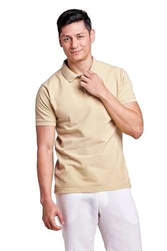 JUARI BE A GENTLEMAN Men’s Premium Micro Polyester, Half Sleeves, Regular Fit Stay Cool & Comfortable, Polo T-Shirt (BEIGH,M) Beige