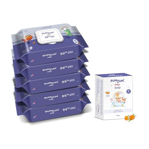 Bumtum Chota Bheem Gentle Soft Moisturizing Wet Wipes with Lid – 72 Pcs.(Pack of 1) & Baby Soap (4N x 50 Gram) & Baby Hair Oil (200 ML) Combo