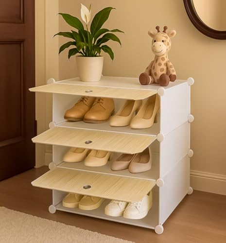 EXVITO Shoe Rack for Home Plastic, 3 Door Portable Shoes-Rack with Dustproof Door for Heels/Slippers/Boots, DIY Multi-Purpose Racks Organizer, Shoe-Storage Cabinet for Entryway – Green