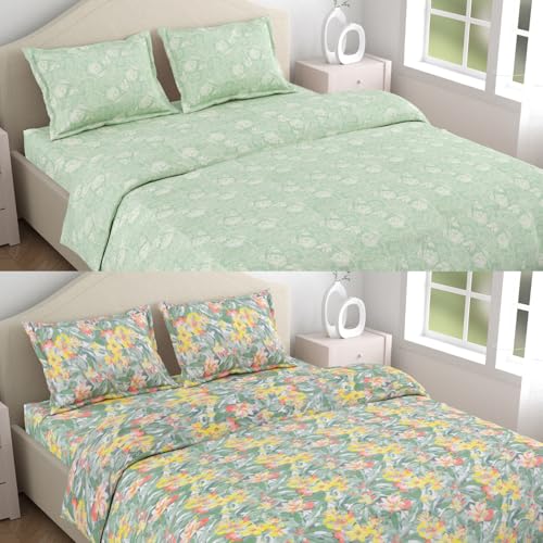 Haus & Kinder Double Bed Bedsheet Set of 2, Ultrasoft Microfiber Bedsheets for Double Bed,Combo Pack 2 Bedsheets, 4 Pillow Covers for Queen Size Bed, Durable, 100 x 90 Inches
